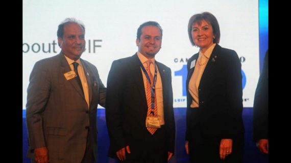 شارة الرئيسة الدولية لأندية الليونز في العالم السيدة Gudrun Yngvadottir للدكتور حسن تاج الدين خلال مؤتمر البحر المتوسط