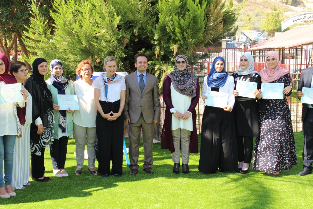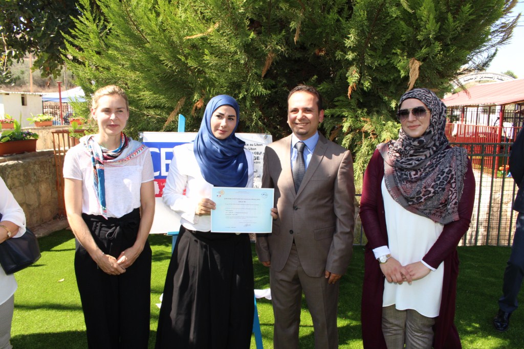 بعد ذلك، ازاحت اولانيون وتاج الدين ولحاف الستارة عن لوحة تؤرخ للمناسبة، ثم وزعوا شهادات تقديرية لاساتذة خضعوا لدورات تربوية مختصة.