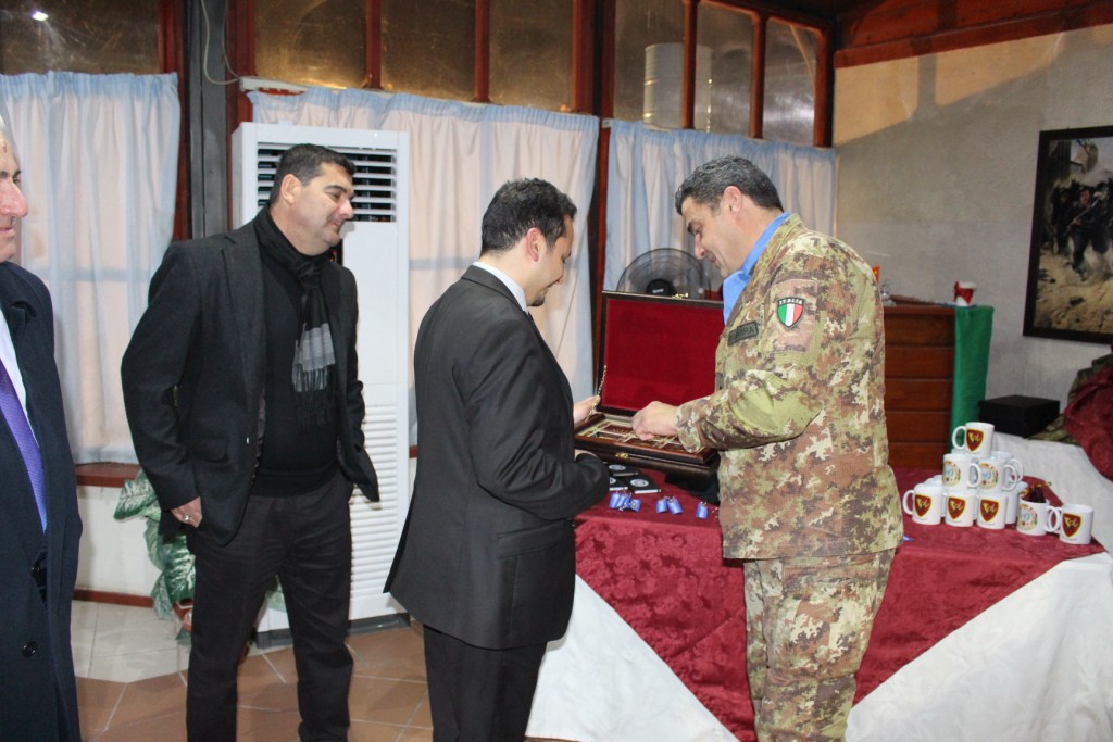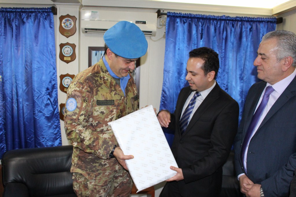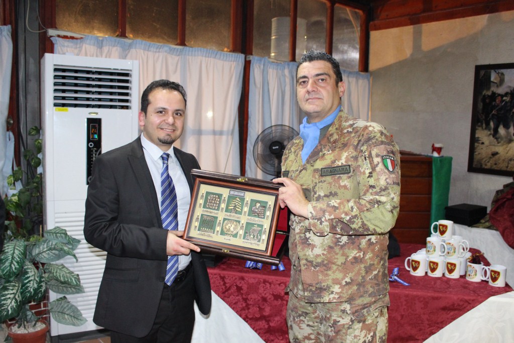 وفي الختام كرم الجنرال آبانيارا تاج الدين وقدم له درع” غيرابالدي” للكتيبة الايطالية التي تقود قياد القطاع الغربي لليونيفيل. بدوره قدم تاج الدين للجنرال آبانيارا هدية رمزية تعنى بالتراث اللبناني.
