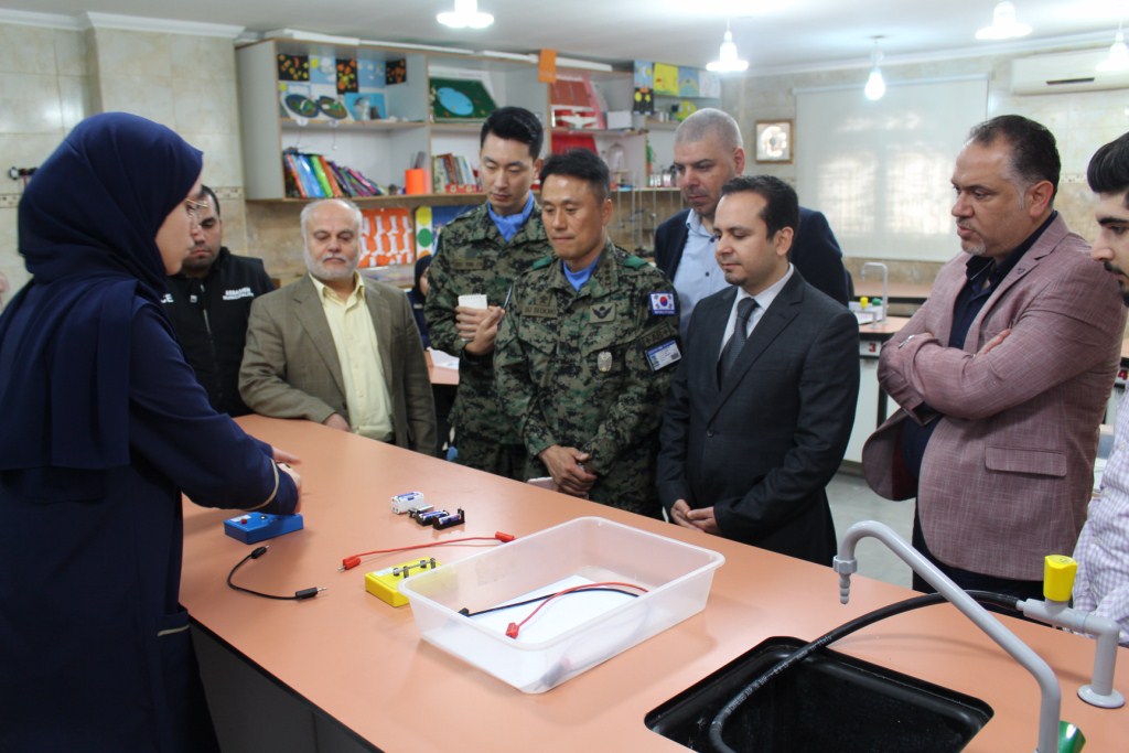 وبعد جولة للكولونيل كوو قادته على أقسام الثانوية وصفوف الطلاب، لا سيما الروضات وفي مختبرات الثانوية المجهزة بأحدث الالات، توقف الكولونيل كوو في صف الطلاب المبدعين في الحساب الذهني الذين فازوا ببطولة العالم للحساب الذهني في ماليزيا وحضر حصة تمارين حسابية اذهل بالسرعة الذهنية والتفوق للطلاب.