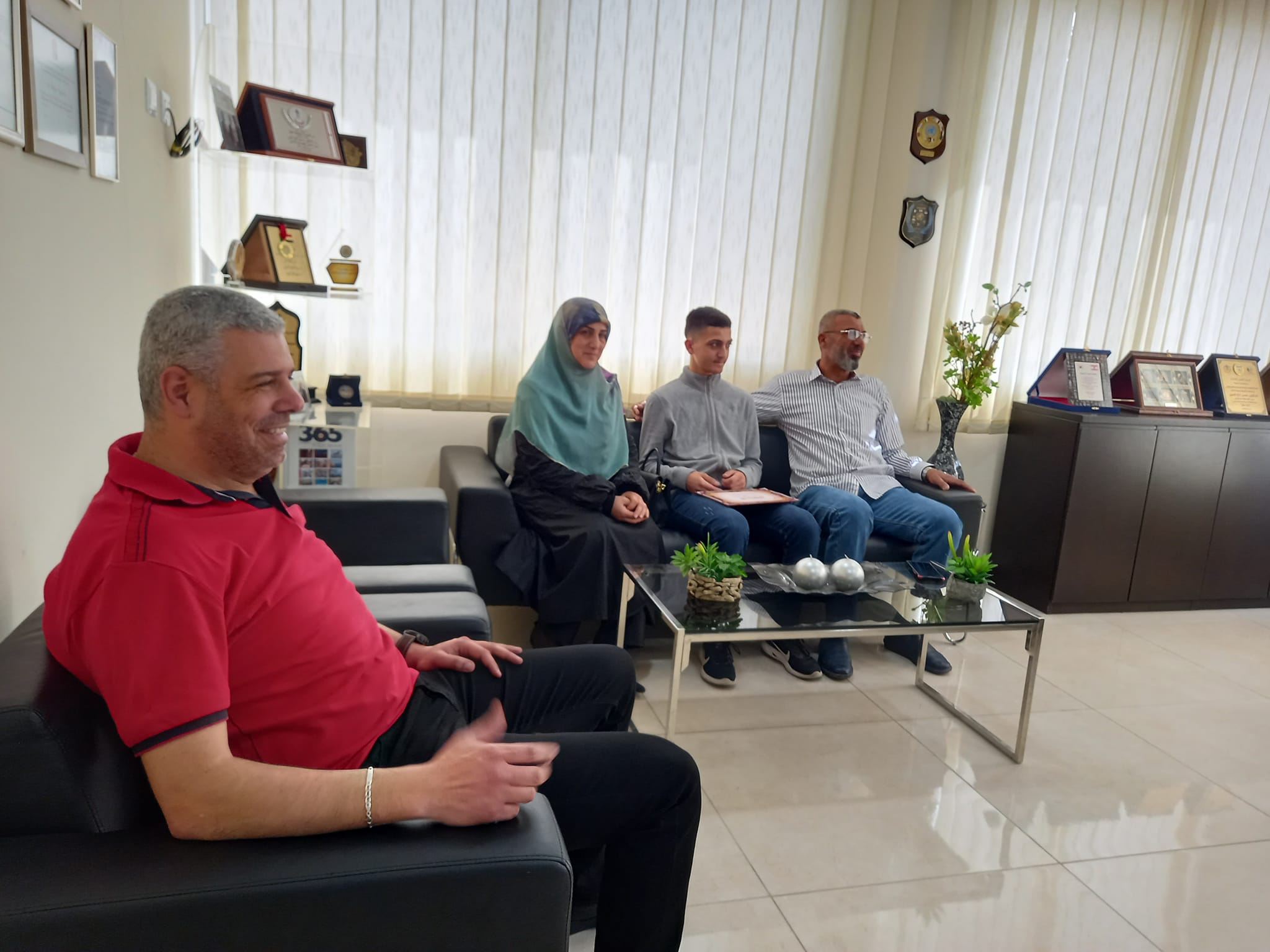 الدكتور حسن تاج الدين مكرمًا حافظ القرآن الطالب خضر زلزلي
