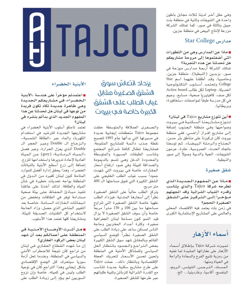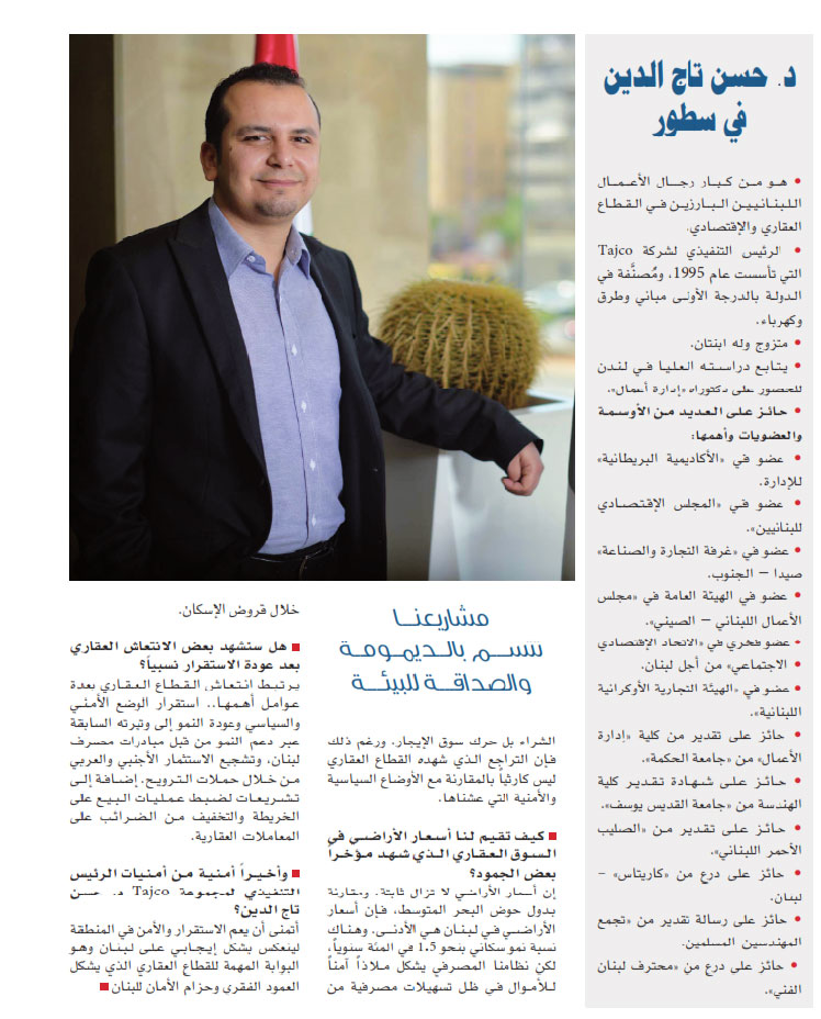 “مشوار التقت الرئيس التنفيذي للمجموعة الدكتور حسن تاج الدين لإلقاء الضوء على النشاط العقاري في هذه المرحلة, و على أهم ما في جعبة Tajco من مشاريع جديدة قيد التنفيذ و التخطيط.
