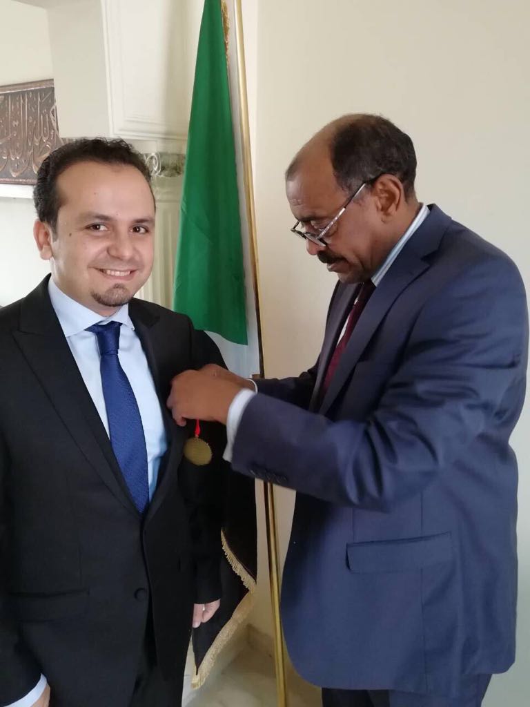 The Sudanese Republic, represented by the Sudanese Ambassador to Lebanon Dr. Ali Al-Sadik Ali, has awarded the Medal for Merit to the President of the Lebanese Economic Union, Dr. Hassan Tajideen, in recognition of his distinguished role in promoting economic growth and sustainable development between Lebanon and Sudan, a ceremony was held at the embassy building in Beirut attended by a number of embassy officials and guests.