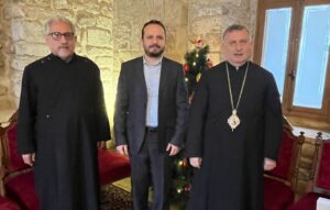 Dr. Hassan Tajeddine took part in a Christmas meeting with the Greek Melkite Catholic Archbishop of Tyre, Metropolitan Georges Iskandar, who received him at the Archdiocesan Residence in the presence of the parish administrator, Economos Bshara Ktoura, and members of the educational staff of Stars College. The meeting was held within the spirit of the Christmas season and aimed at reinforcing ongoing cooperation between the Archdiocese and educational institutions.